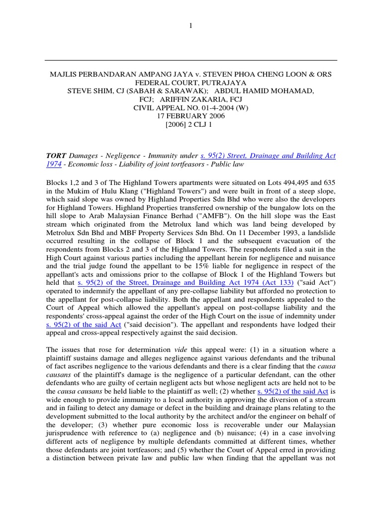 2006 02 17 2006 2 Clj 1 Majlis Perbandaran Ampang Jaya V Steven Phua Ed Negligence Common Law