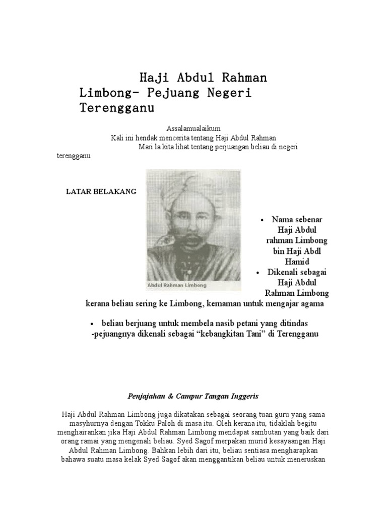 Biodata Tokoh Sejarah Haji Abdul Rahman Limbong