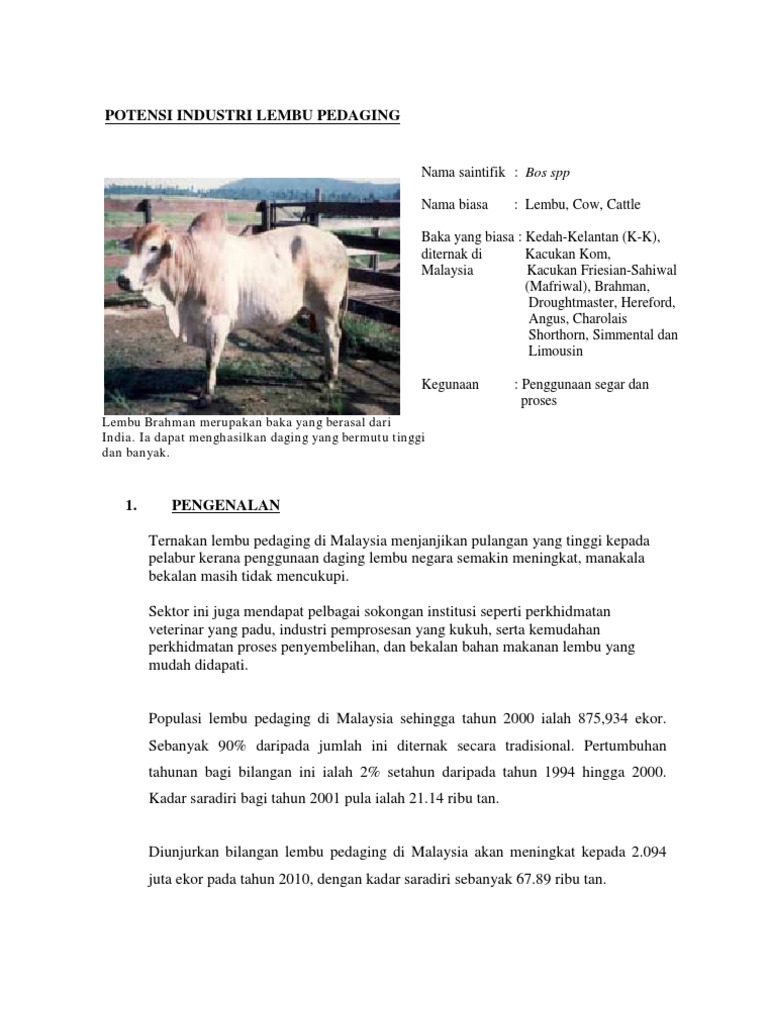 2992009 13 Sistem Ekonomi dan Sosial 131 Zaman Tradisional- Ciri Slideshare uses cookies to improve functionality and performance and to provide you with relevant advertising. Baka ini antara baka lembu pedaging yang berkualiti tinggi 6 Ciri-cri Mempunyai rangka badan dan otot yang besar Mempunyai kenaikkan berat badan yang amat baik Mempunyai bulu badan yang pendek dengan warna putih atau putih krim Mempunyai sifat yang junak Mempunyai kadar adaptasi yang baik dalam pelbagai keadaan cuaca yang berbeza Berat lahir Jantan. Ciri ciri lembu Hereford ialah.