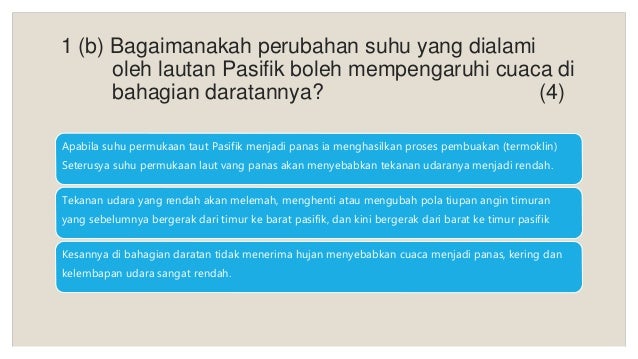 2 Fenomena La Nina banjir besar gejala gangguan iklim yang disebabkan oleh penurunan suhu permukaan laut di bahagian tengan dan timur Lautan Pasifik. Pengaruh Pergerakan Bumi Terhadap Cuaca dan Iklimand this isTHIS IS A HEAD TEXT ON THE TOPA MAIN TITLE Ahmad Wazif Miftah Bin Mohd Ridzwan 2 OptimisBawah Pengajaran. Seperti suatu fenomena alam lainnya angin ini juga mempunyai proses terjdinya sendiri sehingga bisa terbentuklah angin.