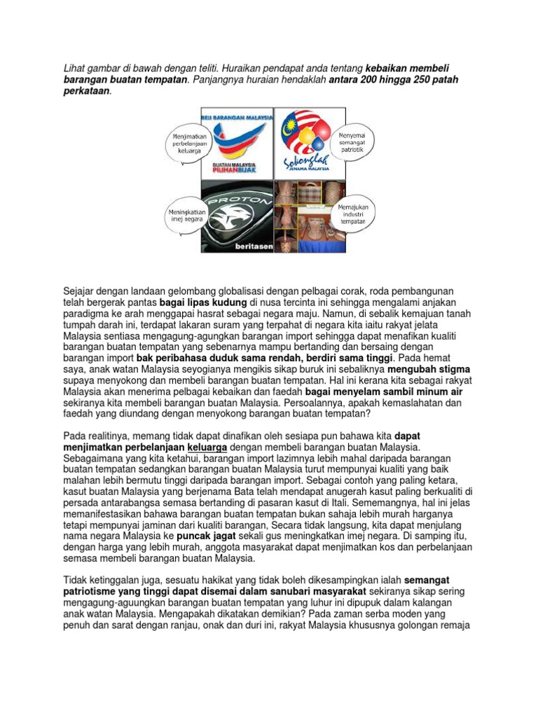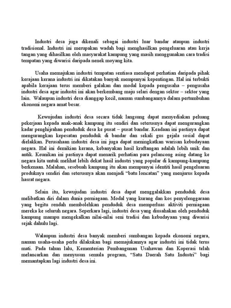 Memajukan industri tempatan. Iklan dan promosi melalui televisyen radio dan internet- Promosi di hotel-hotel. Transformasi memajukan industri k ecil dan sederhana IKS di kalangan wanita luar bandar Zurinah Tahir 1 Jalaluddin Abdul Malek 1 Siv apalan Selvadurai 1 Yusof Hussain 1. Untuk makluman semua penulisan karangan Bahasa Melayu mempunyai pelbagai tajuk dan tema yang berpotensi menjadi soalan pilihan karangan dalam peperiksaan.