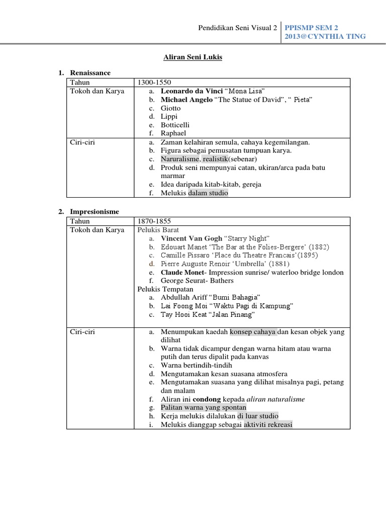 Aliran Seni Lukis Sedunia By Sam777 Flipsnack