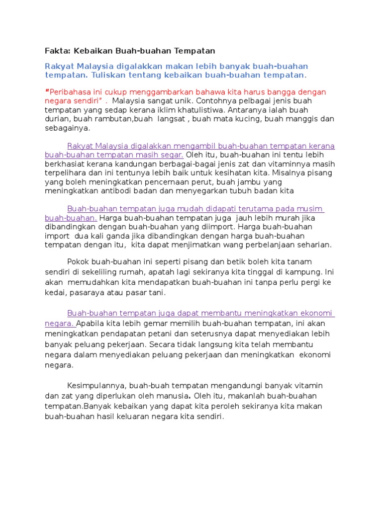 Contoh Contoh Karangan Sekolah Rendah Fakta Kebaikan Buah Buahan Tempatan