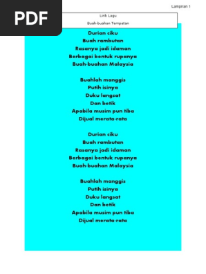 Lirik lagu buah tempatan tahun 3. Lengkapkan lirik lagu Other contents. Nyanyian Pic Audio 7. Video dan lirik lagu Buah-buahan Tempatan Rujuk lampiran B.